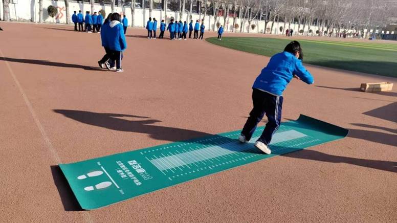 学生们使用捐赠的体育器材进行体育锻炼